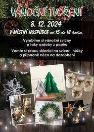 V neděli 26. 10. 2025 proběhne v hospůdce U Sokola od 15:00 Podzimní tvoření. Zaměříme se na podzimní dekorace a přípravu venkovního Betléma.Vstup ZDARMA.