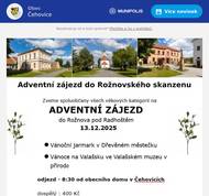 Cehovice: Adventni autobus.zajezd. 13.12. odjezd 8:30h do Roznova p/Radh. Jarmark a vanoce v drevenem mestecku.Dospely 400,- ,nad 65.l-300,-. Rezervace na OU.