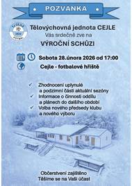 TJ Cejle - pozvánka na výroční schůzi 28. 2. 2026