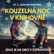 Vážení rodiče, již poněkolikáté si pro Vaše děti knihovna Čepřovice připravila v rámci mezinárodního dne dětské knihy ,,Kouzelnou noc v knihovně”. Pro děti bude připraven bohatý program. Sejdeme se již v pátek 27. 3. 2026 v 16:30 hod na obecním úřadě. Společně půjdeme na divadelní pohádku ,,O chudém královstvíčku”, kdy budou hrát zase děti dětem. Dětem s sebou dejte: - spacák - karimatku - popřípadě polštářek na spaní/plyšáka - pyžamo - náhradní oblečení - vhodná obuv - hrneček na pití Budeme rádi, když nám maminky něco upečete, nepohrdneme ani ovocem a nebo zeleninou. Na všechny se těšíme. V případě dotazu volejte 606630489