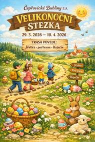 Vážení občané, Čepřovické Bubliny si pro Vás, ale hlavně pro Vaše děti připravily ,,Velikonoční stezku". Trasa vede z Jiřetic-pod lesem -do Koječína, kde na děti čeká drobná odměna. Stezku bude k dispozici až do 10.4.2026. Přejeme příjemnou zábavu.