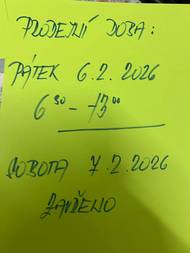 Před 1 měsícemÚprava prodejní doby - COOP Černá 30.-31.1.2026V pátek 30.1.2026 otevřeno 6:30 - 12:00 hodin.V sobotu 31.1.2026 zavřeno.