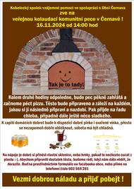 Milí sousedé a přátelé, srdečně vás zveme na první letní pečení v naší komunitní peci Soptík, které pořádá Kobelecký spolek vzájemné pomoci za podpory MAS Krušné hory, Karlovarského kraje a Obce Černava. 📅 Kdy? 28. června 2025 od 13:00 📍 Kde? Komunitní pec Soptík, Černava Přijďte si užít příjemné odpoledne plné vůně čerstvě upečené pizzy, chleba a dalších dobrot. Společně si vychutnáme také Ančák a užijeme si přátelskou letní atmosféru. Těšíme se na vás! Kobelecký spolek vzájemné pomoci