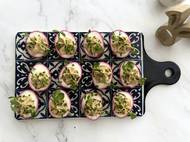 Recept na fialová vejce plněná pastou z avokáda a lososa, která vypadají jako umělecké dílo