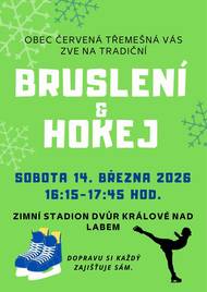 Srdečně Vás zveme na tradiční bruslení ve Dvoře Králové. 14. 3. 2026 od 16:15 - 17:45. Dopravu si každý zajišťuje sám.