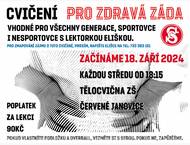 Bolí vás často záda, potřebujete se po náročném dni protáhnout,vyzkoušejte cvičení s Eliškou. Začínáme 18.9. 2024 v tělocvičně. Bližší informace naleznete v přiloženém plakátu.
