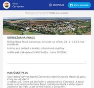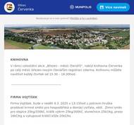 BIOODPAD Kompostárna Nasobůrky oznamuje, že svoz domovního bioodpadu bude z technických důvodů mimořádně přesunut na pátek 12. září. Dále vám oznamujeme, že z důvodu uzavírky komunikace na ulici Dukelská v Litovli se naplněné velké kontejnery na BIODPAD bohužel nemohou vyvážet. Jakmile bude silnice opět průjezdná, bude svoz okamžitě obnoven. Děkujeme za pochopení. HASIČI Sbor dobrovolných hasičů Červenka vás srdečně zve na oslavy 140. výročí založení, které proběhnou v sobotu 13. září. Akce začíná ve 13 hodin slavnostním průvodem od zbrojnice ulicí Wolkerova a Svatoplukova do areálu Olše, kde bude pokračovat další program. Těšit se můžete například na praktickou ukázku techniky a různých hasičských aut okolních sborů nebo zásahu při dopravní nehodě. Mladí hasiči z Červenky představí požární sport, dále také vystoupí litovelské sokolky. V 18 hodin je koncert kapely Reflexy a od 21 hodin zahraje Revival Kabát Morava. Po celé odpoledne bude pro děti přichystána nafukovací skluzavka a další doprovodný program. Těšíme se na vás. BROUŠENÍ NOŽŮ Firma Kovařík Střelice oznamuje, že bude v sobotu 13.9. provádět broušení nožů, nůžek, nožů do masových mlýnků, sekaček a jiné domácí nářadí. Broušení bude probíhat před prodejnou potravin v sobotu od 7 do 11 hodin. SAMOSBĚR ŠVESTEK Doubravský Dvůr nabízí možnost samosběru švestek denně od 9 do 18hod. Cena za kg je 5 Kč při množství nad 20kg, v množství na buchty a knedlíky je cena 15Kč. Bližší informace buď přímo v prodejně ve Dvoře nebo na tel.č.608984736. PRODEJ BRAMBOR NA USKLADNĚNÍ Soukromý prodejce nabízí prodej brambor na uskladnění z domácí produkce. Výběr z více odrůd, cena 15 Kč/Kg. Objednávka na tel.: 737 674 349. Po dohodě, možnost dopravy domů. SBĚR VELKOOBJEMOVÉHO A NEBEZPEČNÉHO ODPADU A ELEKTROODPADU V sobotu 13. října proběhne v obci Červenka mobilní sběr velkoobjemového a nebezpečného odpadu a elektroodpadu. Svoz bude proveden zastávkovým způsobem, při kterém sběrná vozidla zastaví v určený čas na uvedených stanovištích, kde budete moci předat osobně odpady zaměstnancům svozové společnosti. Přehled stanovišť: 1. Odstavná plocha (ul. Třebízského) 7:30 – 8:00 h 2. U hasičské zbrojnice (ul. Nádražní) 8:15 – 9:00 h 3. Parkoviště u bývalého kina (ul. Nádražní) 9:15 – 10:00 h Žádáme Vás, abyste nenaváželi svůj odpad na tato stanoviště v jinou dobu. Pohozený odpad komplikuje svoz odpadu. Druhy přebíraných odpadů: Textil, koberce, nábytek, peřiny, matrace, elektrospotřebiče, pračky, bateriové monočlánky, automobilové akumulátory, oleje, barvy, ředidla, kyseliny, rtuťové zářivky a výbojky, nádoby se zbytky chemikálií, televizory, lednice, mrazáky, tonery. Veškeré předávané tekutiny musí být v uzavřených obalech, v jiném případě nebudou převzaty. Nelze odevzdávat: Stavební odpad, eternit, dřevo (trámy, fošny, větve), polystyren, léky, které se odevzdávají pouze v lékárnách a pneumatiky – ty se bezplatně, celoročně odevzdávají ve vybraných pneuservisech. Mobilní sběr JE URČEN POUZE pro občany s trvalým pobytem v obci Červenka a pro občany, kteří mají v obci Červenka ve vlastnictví stavbu určenou k individuální rekreaci, byt nebo rodinný dům. Mobilní sběr NENÍ URČEN pro odpad vzniklý z činnosti podnikajících fyzických a právnických osob.