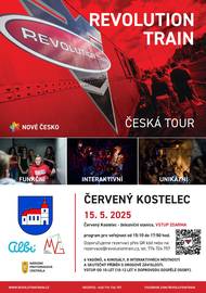 Unikátní, interaktivní a funkční program protidrogové prevence. Multifunkční prostory vlaku umožňují provádění programů pro školy, rodiny s dětmi, širší veřejnost i zaměstnanecké kolektivy. Šest stříbrných obrněných vagónů = 4 kinosály, 8 interaktivních místností a v nich příběh, jak snadné je propadnout drogám a jak těžké je se závislosti zbavit. Cílem vlakového programu REVOLUTION TRAIN je prostřednictvím zapojení lidských smyslů zapůsobit na návštěvníka a inspirovat jej k pozitivním životním volbám. Jsou zde představeny mechanismy, kterými drogová závislost vzniká až do důsledků, které v životě závislého čekají. Díky zapojení do reálného příběhu, emotivním situacím a interaktivnímu přístupu dokáže program zaujmout a dát prostor k přemýšlení nad nebezpečím legálních i nelegálních drog. Program trvá 90 minut a je určen jak pro školní skupinky (od 12 do 17 let) tak i pro širokou veřejnost (od 10 let). Vítáni jsou i rodiče, protože náznaky užívání drog se objevují již u dětí ve velmi nízkém věku. Rodiče si závislosti u dítěte dlouho nemusí všimnout a nakonec může být pozdě. Vstup bude díky městu Červený Kostelec, ALBI ČESKÁ REPUBLIKA a.s. a MG Italy po celou dobu zdarma. REVOLUTION TRAIN dlouhodobě podporuje Národní protidrogová centrála. Podporu a záštity projektu udělili Policejní prezident PČR, Ministerstvo vnitra a ministr zdravotnictví ČR. Velkou podporou jsou pozitivní reakce dětí a pedagogů, kteří se programu zúčastnili.