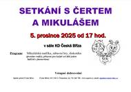 Srdečně zveme v pátek 5.12.2025 od 17:00 hod do kulturního domu. Mikulášská nadílka, zábavné hry, diskotéka. Vstupné dobrovolné.