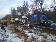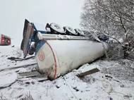 Kvůli převrácené cisterně, ze které vytekla nafta do potoka, zůstane týden zavřený hlavní tah na Rakovnicku