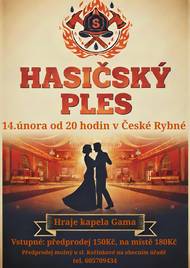 SDH Česká Rybná si Vás dovoluje pozvat na Hasičský ples 14. února 2026. Vstupné: předprodej 150,-Kč s místenkou, na místě 180,-Kč. Předprodej na obecním úřadě od 12.1.2026. Kapela GAMA.