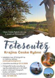Obec Česká Rybná Vás zve k účasti ve fotosoutěži - KRAJINA ČESKÉ RYBNÉ. Uzávěrka soutěže je 13.9.2026. Případné dotazy na tel.: 737 505 134. Odešledte max. 8 fotografií na e-mail: ceskarybna@tyhan.cz