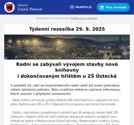 Zářijové noviny vám přináší zprávu o rekonstrukci Nízkoprahového zařízení pro děti a mládež Naděje, informace o investičních akcích Město Česká Třebová a o organizaci školního roku 2025/2026. - Obsahuje pozvánky na tradiční události, ale i mimořádné oslavy nebo sousedskou slavnost Zažít město jinak. - DDM Kamarád představuje nabídku Univerzity třetího věku pro školní rok 2025/2026. V městské knihovně pokračuje Virtuální univerzita třetího věku, nabídne 2 nové kurzy. - Rozhovor představí držitelky Ceny města Kohout, Denisu Váňovou a Markétu Doležalovou, a jejich nový společný projekt, umělecký ateliér Artuž s kurzy pro veřejnost. - Toto vydání uzavírá historie DS Hýbl, který baví z jeviště obecenstvo už 145 let, a informace ze sportu, zejména nábor nových členů. Do přípravy dalšího čísla se můžete zapojit i vy, stačí poslat příspěvek, pozvánku na událost a fotografie na redakce@ceskotrebovskyzpravodaj.cz do 12. září 2025.