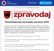 Prosincové noviny vám přináší přehled investic města v roce 2025, vyhlášení soutěže o nejlepší studentský projekt na koncepční řešení Robova kopce a pozvánky nejen na adventní akce v našem městě a nejbližším okolí. Jednání Zastupitelstva města Česká Třebová se uskuteční v pondělí 15. prosince 2025 od 15:00. - Toto vydání obsahuje kalendáře svozu odpadu na rok 2026! - Dále nepřehlédněte výzvu k nominaci na ceny města KOHOUT 2025 a Českotřebovský Ámos 2025. - Historické články mapují podivuhodné cesty ostatků Adolfa Jana rytíře Zapského ze Zap a vývoj podloubí na Starém náměstí. - Dne 31. prosince 2025 ukončuje svoji práci gynekolog MUDr. Jaroslav Pozděna. Ordinace bude na tomtéž místě pokračovat v péči o ženy po cca 2měsíční přestávce. Během ní dojde k přestavbě a modernizaci ordinace. Zatím péči o těhotné a akutní ošetření bude poskytovat GYNCENTRUM SARA s.r.o. v Lékařském domě vzdáleném cca 100 metrů.- Připravujeme Českotřebovský infoservis pro rok 2026. Pokud chcete aktualizovat nebo přidat informace místních organizací a sociálních služeb pro rok 2026, prosím o jejich zaslání na e-mail redakce@ceskotrebovskyzpravodaj.cz do 5. prosince 2025. Českotřebovský infoservis bude opět součástí lednového vydání městských novin. Do přípravy dalšího čísla se můžete zapojit i vy, stačí poslat příspěvek, pozvánku na událost a fotografie na redakce@ceskotrebovskyzpravodaj.cz do 12. prosince 2025. Českotřebovský zpravodaj vydává Městská knihovna.