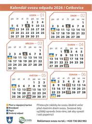 Kalendář svozu odpadů - I.pololetí 2026
