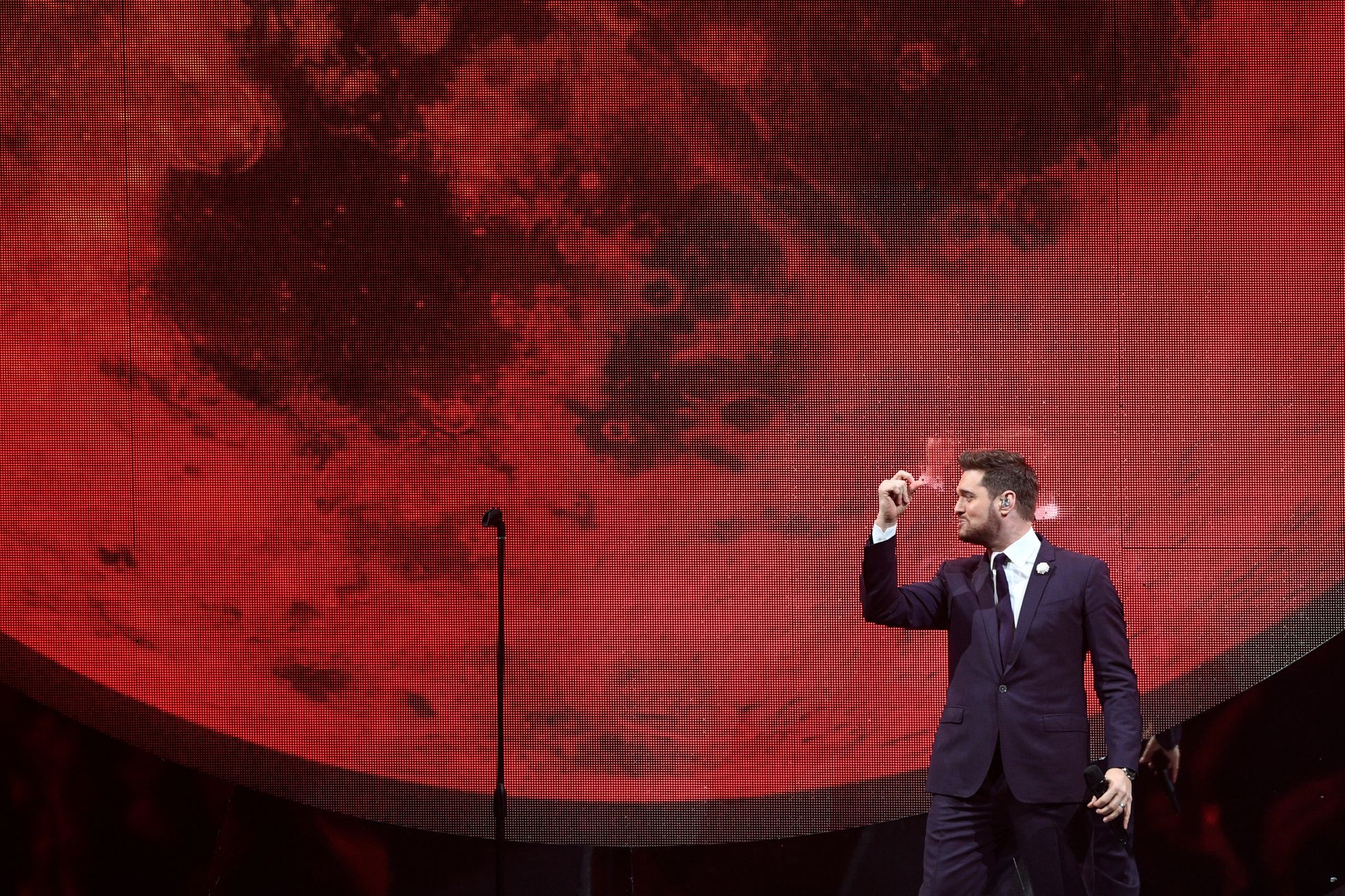 Snímek z úterního koncertu Michaela Bublého v pražské O2 areně.
