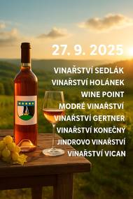 Zveme vás na procházku spojenou s degustací vín Vinnou stezkou na Hujáb v sobotu 27.9.2025 od 14:00 do 18:00 hodin. Doprovodný program pro děti i dospělé na náměstí Bohuslava Kašpara do 22:00 hodin. Vstup 150,- Kč (sklenka v ceně), program na náměstí zdarma.