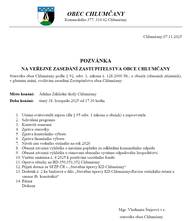 Starostka obce Chlumčany zve občany na veřejné zasedání zastupitelstva obce Chlumčany, které se koná v úterý 18.11.2025 od 17:30 hod. v jídelně Základní školy Chlumčany. Sledujte https://www.obec-chlumcany.cz/obecni-urad/uredni-deska/