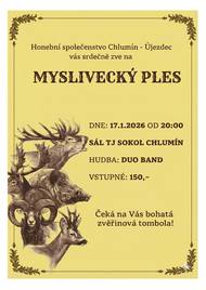 ODSTÁVKA ZRUŠENA - 14. ledna 2026 nedojde k plánované odstávce elektrické energie. MYSLIVECKÝ PLES v sobotu 17. ledna 2026 od 20:00 hod., společenském sále na hřišti TJ Sokol Chlumí