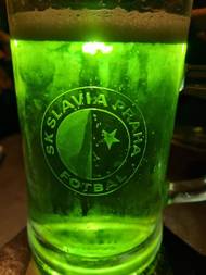 Půllitr s logem sportovního klubu SK Slavia Praha v zelené barvě fotbalového týmu Bohemians Praha 1905 neznamená slučování těchto dvou klubů, ale dnes již tradiční čepování zeleného piva ve chmelenské klubovně.