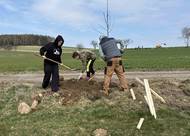Sázení stromků podél cesty na Borovnici 29.3. 2025