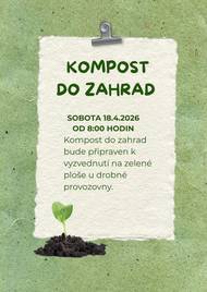 SOBOTA 18.4.2026 OD 8:00 hodin Kompost do zahrad bude připraven k vyzvednutí na zelené ploše u drobné provozovny.