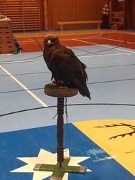 Naše sportovní hala se začátkem prosince nečekaně proměnila v království dravců. Navštívil nás totiž sokolník, pan Záleš, se svým vzdělávacím programem.