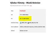🔊Informace občanům: Pozor na probíhající výluku vlaku na trati Mladá Boleslav - Všetaty, která bude trvat do 25.11.2025! Po dobu výluky budou všechny vlaky ve vyloučeném úseku nahrazeny autobusy náhradní dopravy. Náhradní doprava je organizována podle výlukového jízdního řádu (místa viz příloha). Více informací zde: https://www.cd.cz/jizdni-rad/omezeni-provozu/vyluka/18394