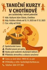 Máte rádi tanec a zábavu? Pak jsou tyto taneční kurzy přímo pro vás. Každou středu od 19 hodin v Kulturním zařízení Slávie. Přihlaste se a protančete se svým partnerem střevíce.