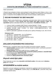 ‼️UPOZORNĚNÍ – PTAČÍ CHŘIPKA‼️ Město Chrast včetně všech místních částí se nachází v uzavřeném pásmu kvůli výskytu ptačí chřipky v Pardubickém kraji (ohnisko Rosice u Chrasti). 🐔Týká se hlavně chovatelů drůbeže a ptáků Pokud chováte slepice, kachny, husy, holuby apod., je nutné: ✔️držet ptáky odděleně od volně žijícího ptactva, ✔️zabránit přístupu cizích ptáků ke krmivu a vodě, ✔️hlásit zvýšené úhyny nebo nemocnost veterinární správě, ✔️nahlásit obci druh a počet chovaných ptáků (přiložený formulář) nejpozději do 10. 2. 2026. 👉V nejbližších dnech dostanou domácnosti do svých poštovních schránek formulář ke sčítání s dalšími pokyny. Pokud chováte drůbež a ostatní ptactvo, vyplňte formulář a některým z uvedených způsobů je doručte na městský úřad. Formulář je také ke stažení na stránkách města. https://www.mestochrast.cz/narizeni%2Dstatni.../d-20229 🚫Platí zákaz přesunů ptáků, jejich prodeje a nákupu, pořádání výstav, trhů a vypouštění ptáků. ☠Na uhynulé ptáky nesahejte holýma rukama a jejich nález nahlaste městské policii - tel. 601 100 360. Pro ostatní občany se situace nijak výrazně nemění – opatření jsou preventivní a slouží k zamezení šíření nákazy.