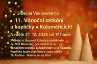 Srdečně vás zveme na 11. Vánoční setkání u kapličky v Koloměřicích. V neděli 21.12.2025 od 17:00hod. si můžete zazpívat koledy s muzikanty ze ZUŠ Musicale, pochutnat si na vánočním svařáku a popovídat se sousedy...