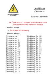 Ve čtvrtek 22.01.2026 bude v části obce Chrášťany přerušena dodávka el. energie.