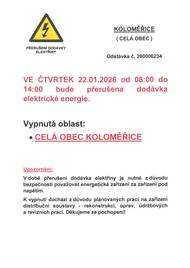 Ve čtvrtek 22.01.2026 bude v celé obci Koloměřice přerušena dodávka el. energie.