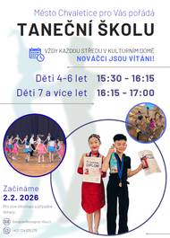 TANEČNÍ ŠKOLA pro děti od 2.2.2026 v Kulturním domě Chvaletice.