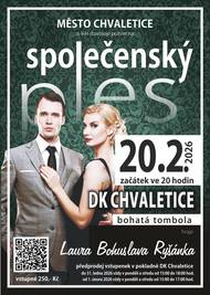 Společenský ples Města Chvaletice v pátek 20.2.2026 od 20 hodin. K tanci a poslechu hraje Laura Bohuslava Ryšánka. Bohatá tombola!