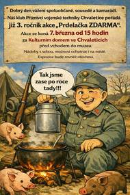 3. ročník akce "PRDELAČKA ZDARMA" v sobotu 7.3.2026 od 15 hodin za KD Chvaletice.
