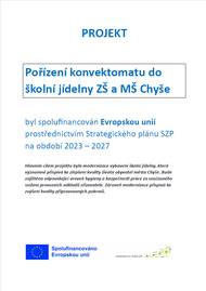 Povinná publicita : pořízení konvektomatu do školní jídelny ZŠ a MŠ Chyše