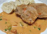 Vepřové plátky na cibulce a česneku jsou úžasně měkké, křehké a šťavnaté. Pokrm má výraznou chuť a skvěle se hodí i ke slavnostnímu obědu.