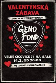 Kapela GENOFOND, která má základ v Číčovicích Martin Čtrnáctý a Babeta Horáčková vás zvou na taneční zábavu. Vstupné dobrovolné.
