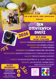 ZŠ a MŠ ČISTÁ, OKR.RAKOVNÍK ZVE NA DEN OTEVŘENÝCH DVEŘÍ 27.01.2026 od 08:00 do 11:40 hodi