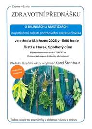 Zítra, 12.března 2026, bude správce vodovodu opravovat havárii na jižní větvi v Čisté u Horek u cp. 66. Z důvodu kopání ručně bude omezena dodávka pitne vody v této části obce v době od 8:00 do 14:00 hodin. Jinde voda normálně poteče. Děkujeme za pochopení...