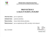 Ve dnech 27.10. a 29.10. 2025 provoz mateřské školy nebude přerušen.