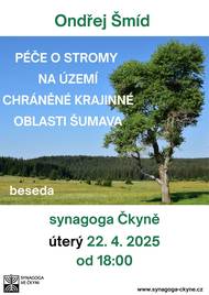 V synagoze ve Čkyni se bude konat v úterý 22.04.2025 od 18:00 beseda na téma Péče o stromy na území CHKO Šumava.
