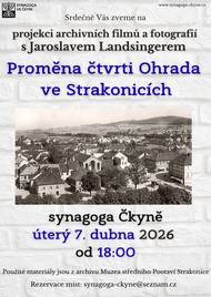 Před 15 dnyProjekce archivních filmů a fotografií na téma proměny čtvrti Ohrada ve StrakonicíchV úterý 7. dubna 2026 od 18:00 hodin se koná projekce archivních filmů a fotografií na téma proměny čtvrti Ohrada ve Strakonicích. Všichni jsme zváni. je nutná rezervace míst.