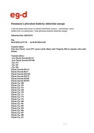 Před 9 měsíciPřerušení dodávky elektrické energie 10.07.2025Dne 10.07.2025 bude přerušena dodávka elektrické energie od 8:00 do 12:00 hodin - lokalita RD za autobusovým nádražím.