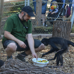 Nový přistěhovalec děčínské zoo Kystráček modrolící miluje si náramně užívá štětkovce od chovatelů!