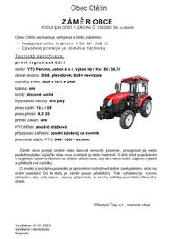 Obec Ctětín seznamuje veřejnost s tímto záměrem: Prodej obecního Malotraktoru YTO MF 504 C. Důvodem prodeje je obměna techniky.