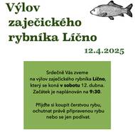V sobotu 12.4. od 9:30 proběhne výlov Zaječického rybníku Líčno. Před tím lze očekávat zvýšenou hladinu Zaječického potoka, který protéká naší obcí. Přijďte se podívat na výlov a nebuďte překvapení zvýšeným průtokem.