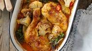 Marinované kuře pečené s květákem a cuketou – jednoduchá večeře pro všední den z jednoho pekáče