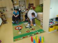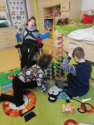 Někdy relaxujeme ve snoezelenu, někdy jdeme na procházku. Také dokážeme spojit pohybovou výchovu s vlastivědou - chodili jsme s dětmi po kulturněhistorických památkách. Stejně tak jsme zvládli roznést vánoční přání našim přátelům.